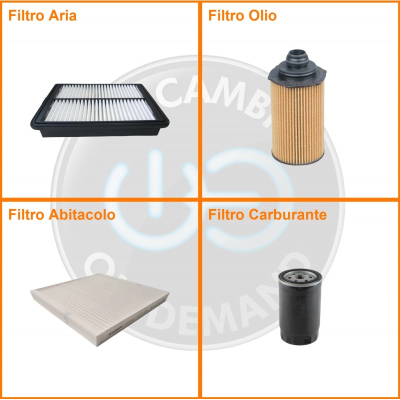 ComposizioneFiltro abitacolo, Filtro aria, Filtro gasolio, Filtro olio