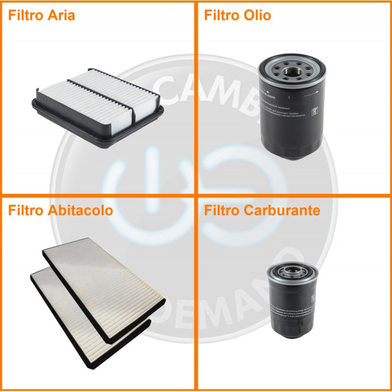 ComposizioneFiltro gasolio, Filtro olio, Filtro abitacolo, Filtro aria