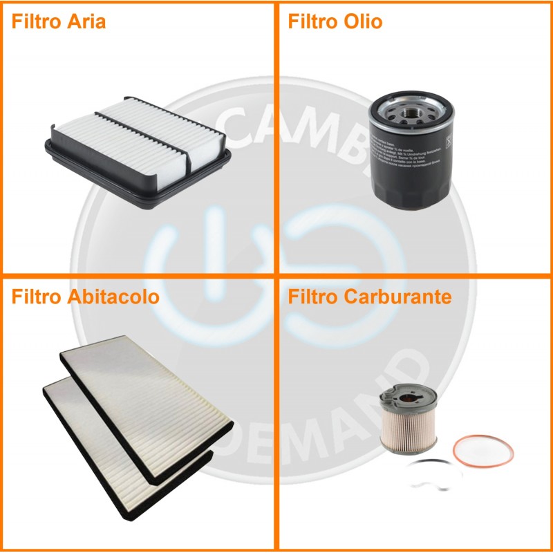 ComposizioneFiltro olio, Filtro abitacolo, Filtro aria, Filtro gasolio