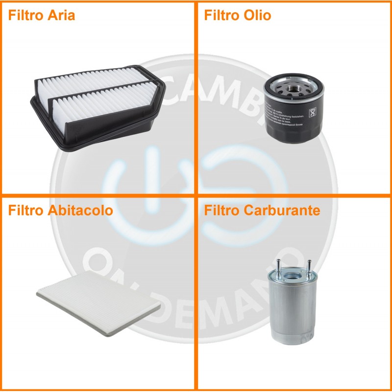 ComposizioneFiltro gasolio, Filtro olio, Filtro abitacolo, Filtro aria