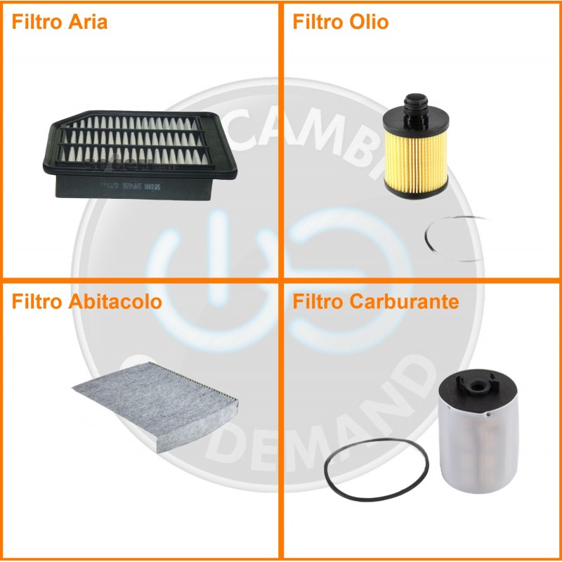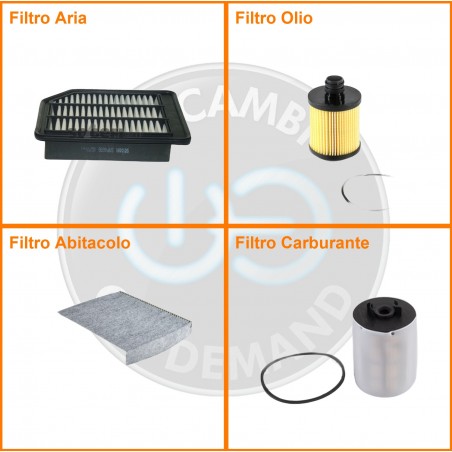 ComposizioneFiltro gasolio, Filtro olio, Filtro abitacolo ai carboni attivi, Filtro aria