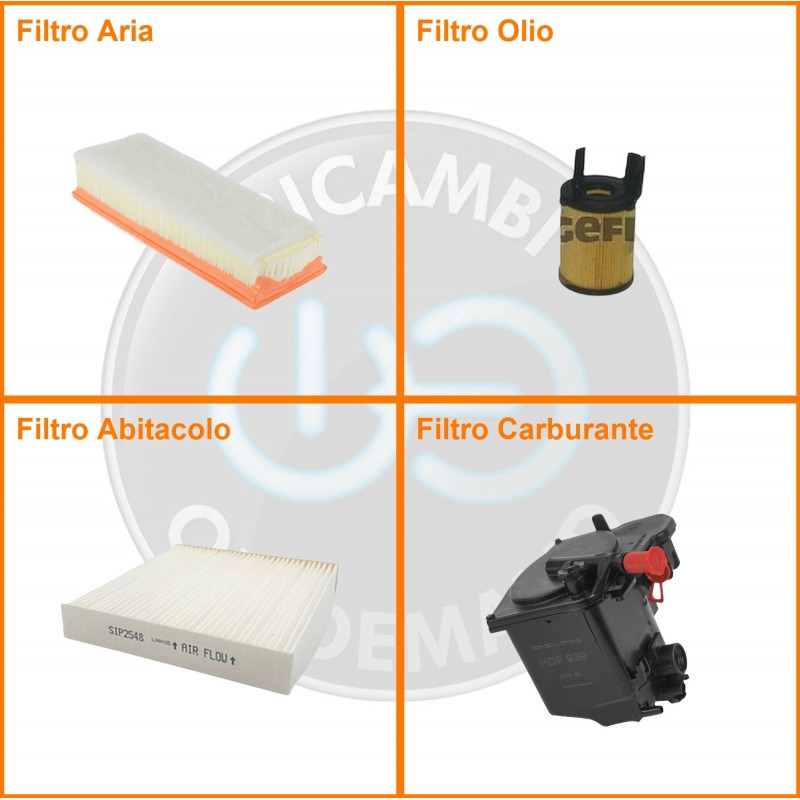 ComposizioneFiltro abitacolo, Filtro aria, Filtro gasolio, Filtro olio