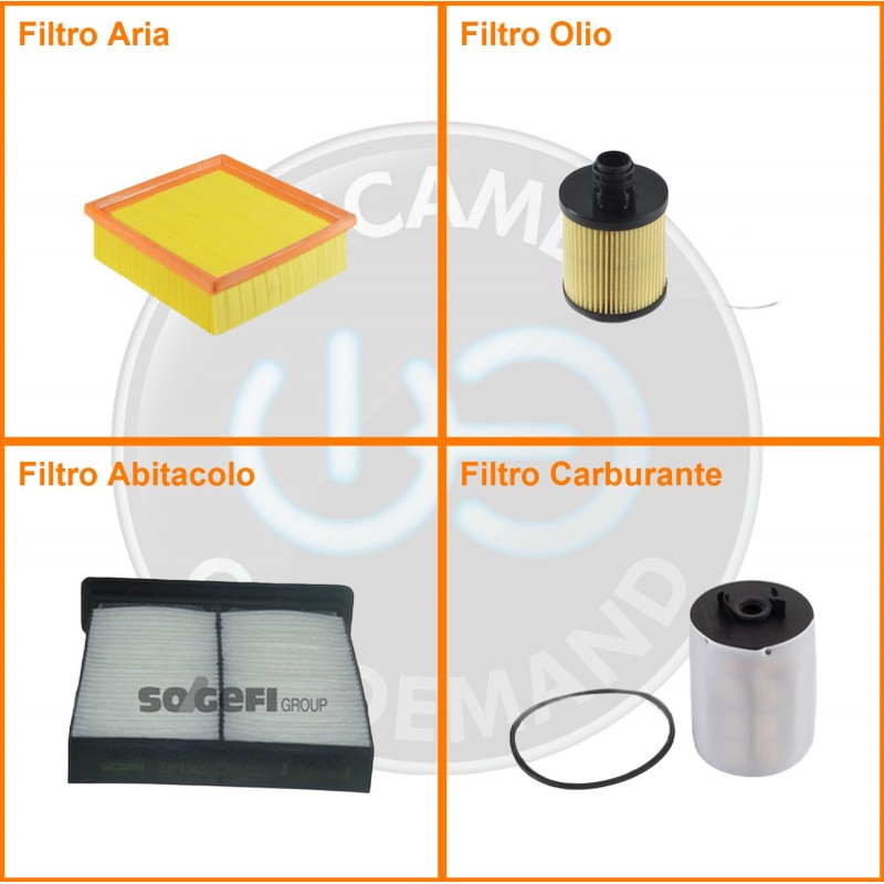 ComposizioneFiltro gasolio, Filtro olio, Filtro abitacolo, Filtro aria
