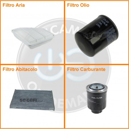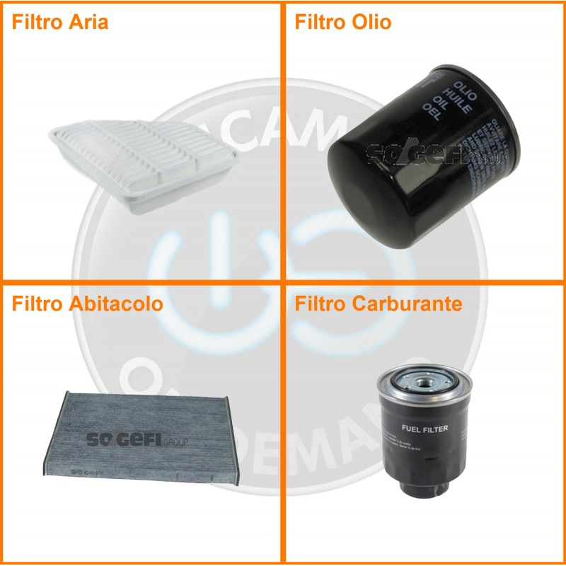 ComposizioneFiltro gasolio, Filtro olio, Filtro abitacolo ai carboni attivi, Filtro aria