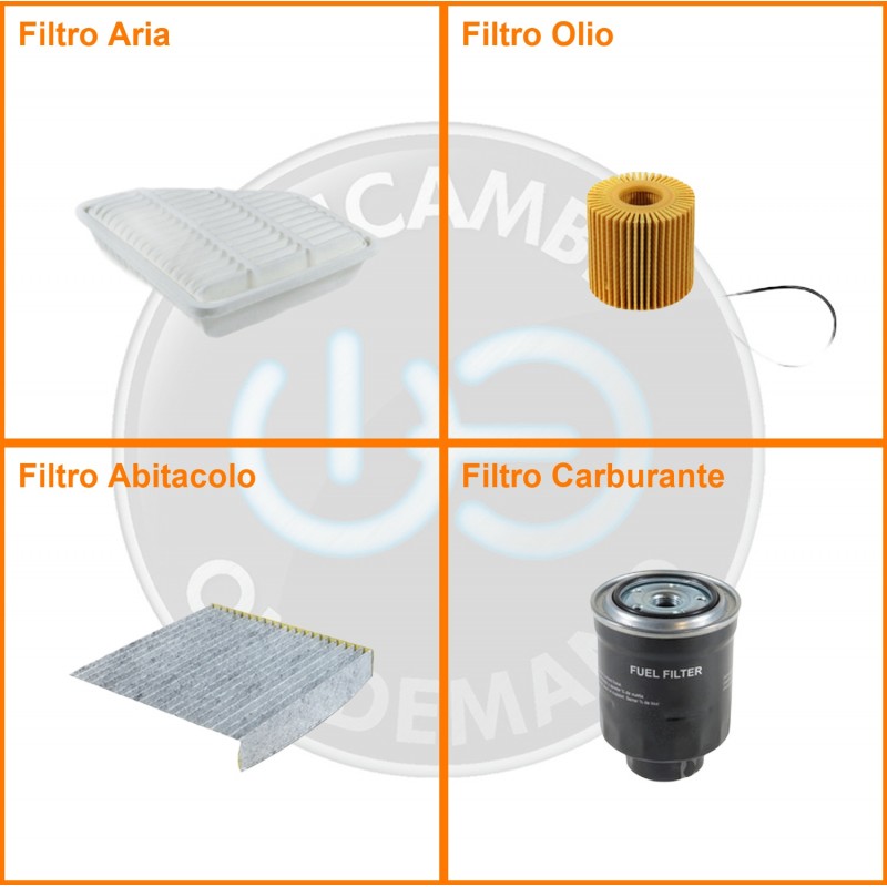 ComposizioneFiltro gasolio, Filtro olio, Filtro abitacolo ai carboni attivi, Filtro aria