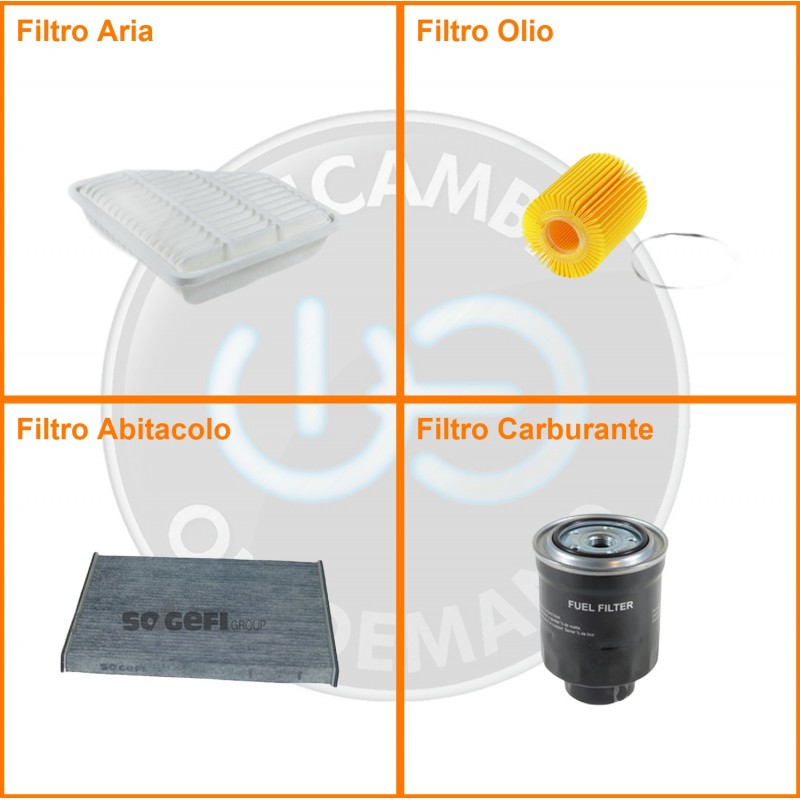 ComposizioneFiltro abitacolo ai carboni attivi, Filtro aria, Filtro gasolio, Filtro olio