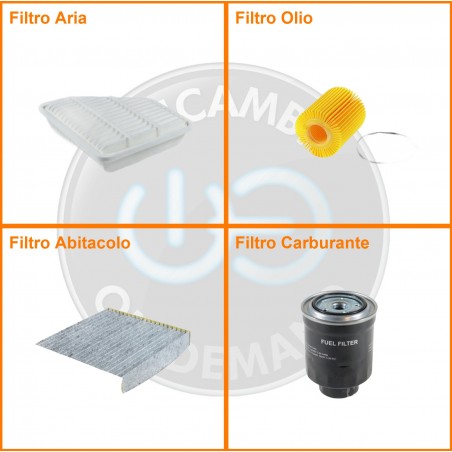ComposizioneFiltro gasolio, Filtro olio, Filtro abitacolo ai carboni attivi, Filtro aria