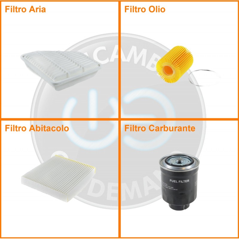 ComposizioneFiltro gasolio, Filtro olio, Filtro abitacolo, Filtro aria