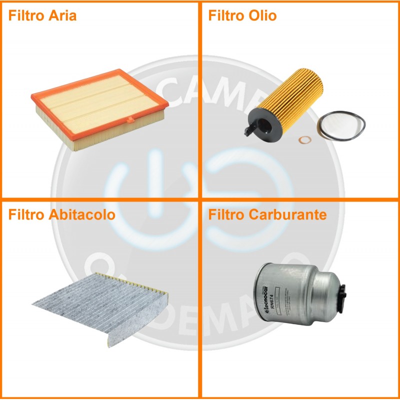 ComposizioneFiltro abitacolo ai carboni attivi, Filtro aria, Filtro gasolio, Filtro olio