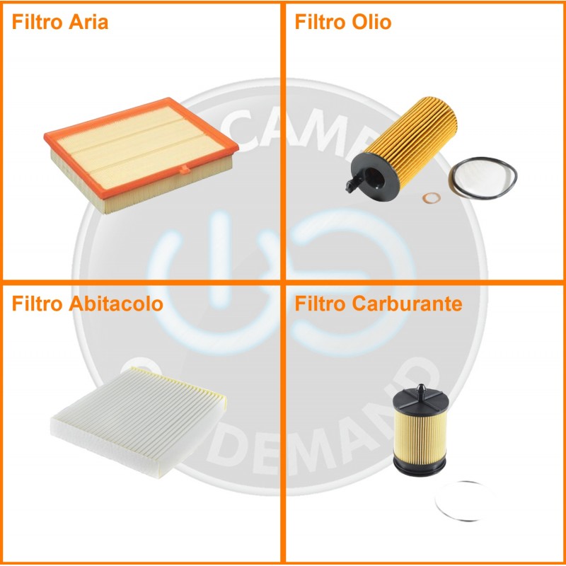 ComposizioneFiltro gasolio, Filtro olio, Filtro abitacolo, Filtro aria