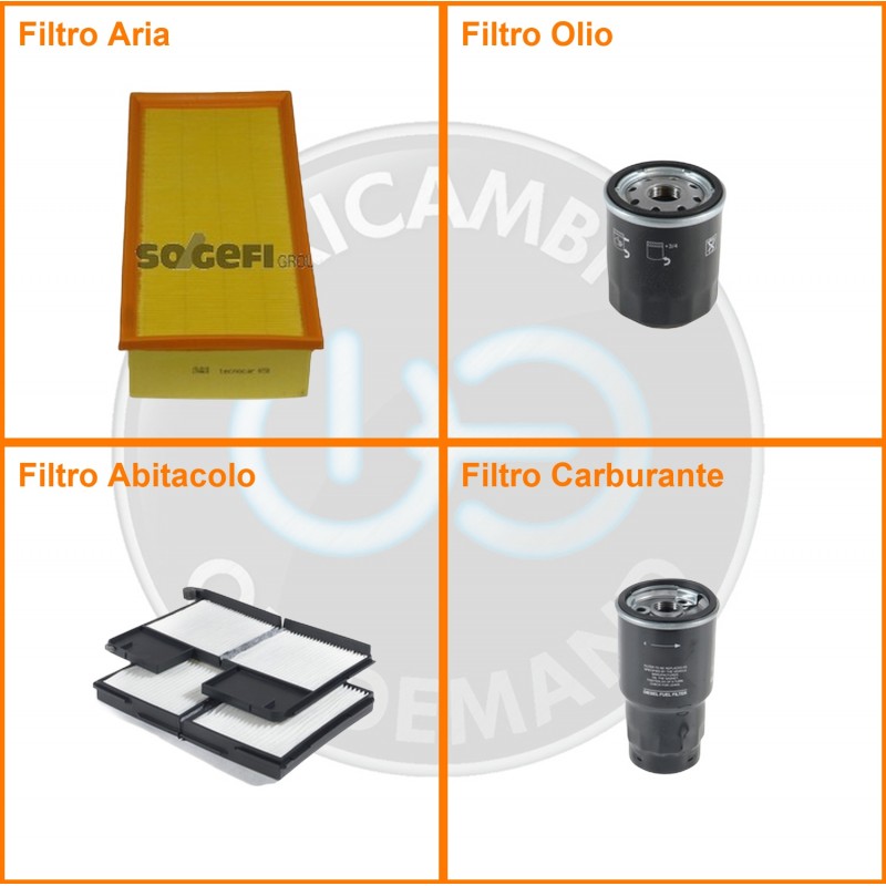 ComposizioneFiltro abitacolo, Filtro aria, Filtro gasolio, Filtro olio