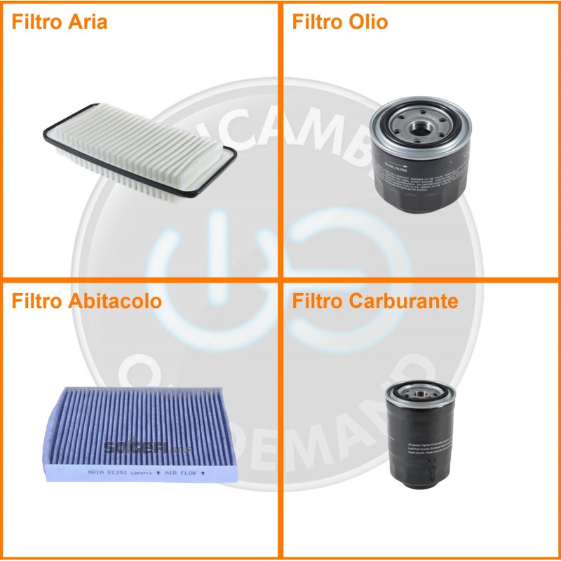 ComposizioneFiltro gasolio, Filtro olio, Filtro abitacolo ai carboni attivi, Filtro aria