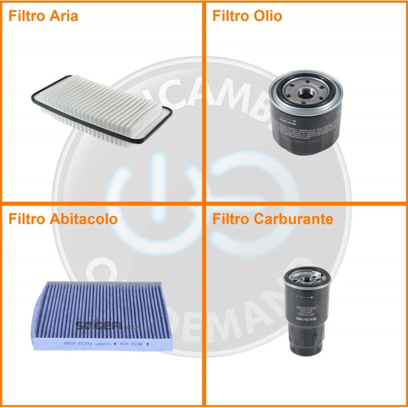 ComposizioneFiltro gasolio, Filtro olio, Filtro abitacolo ai carboni attivi, Filtro aria