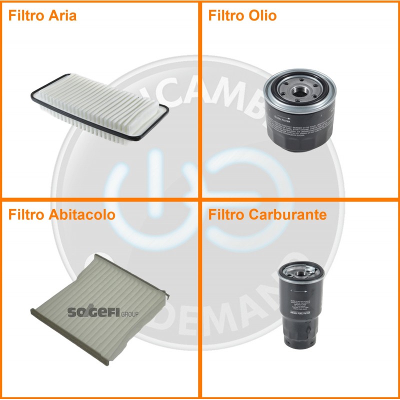 ComposizioneFiltro abitacolo, Filtro aria, Filtro gasolio, Filtro olio