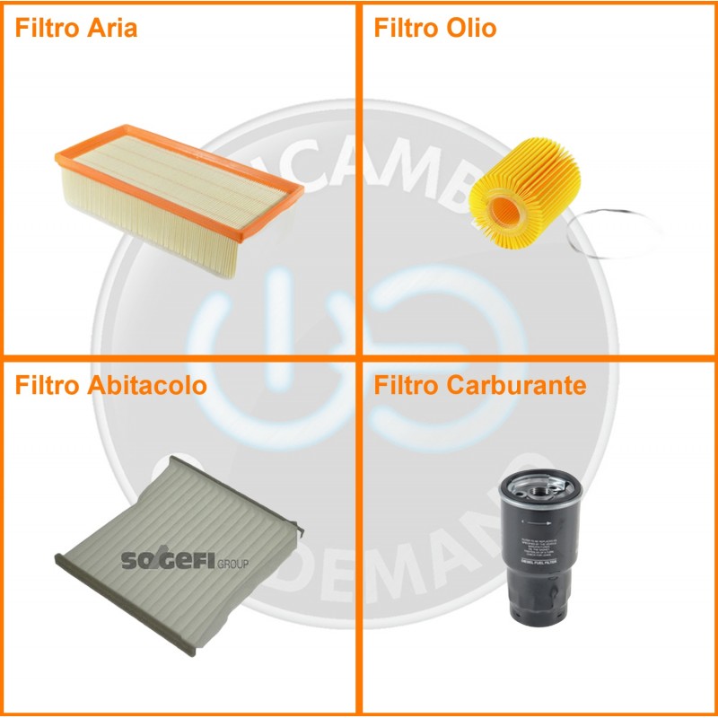 ComposizioneFiltro abitacolo, Filtro aria, Filtro gasolio, Filtro olio