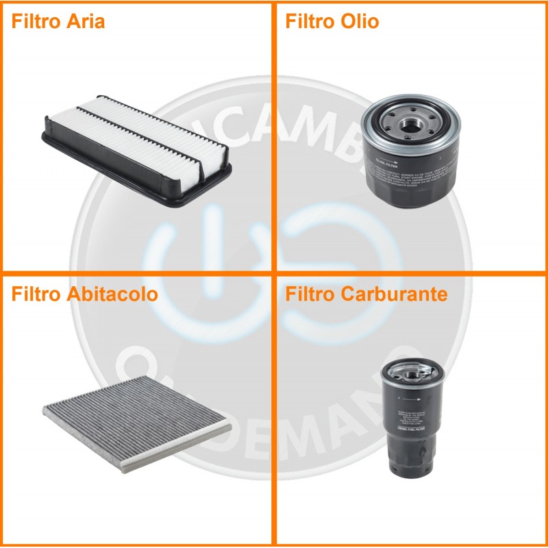 ComposizioneFiltro abitacolo ai carboni attivi, Filtro aria, Filtro gasolio, Filtro olio