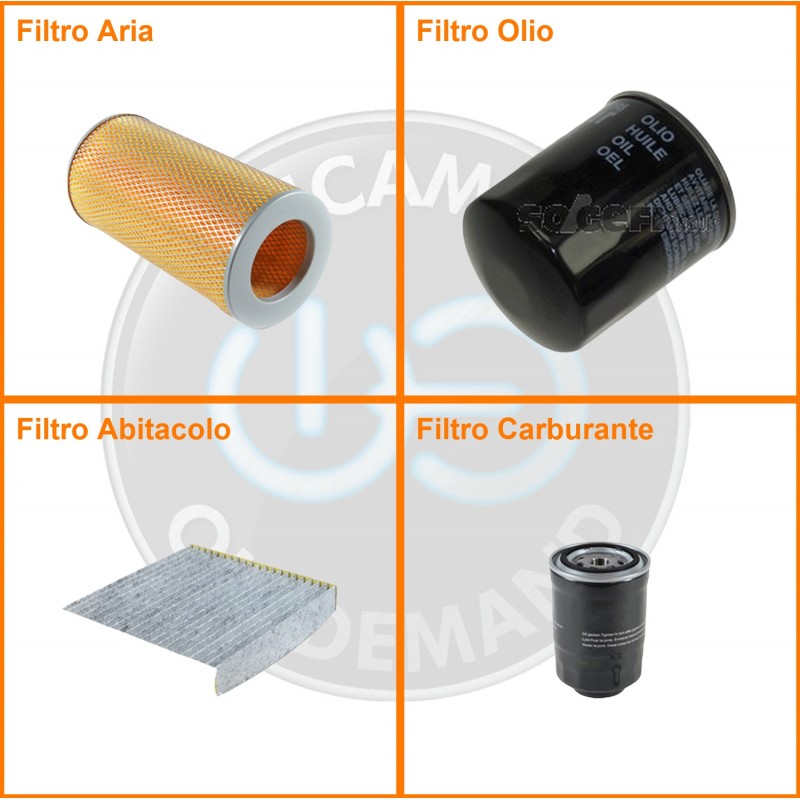 ComposizioneFiltro gasolio, Filtro olio, Filtro abitacolo ai carboni attivi, Filtro aria