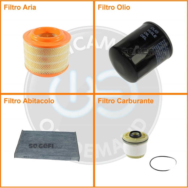ComposizioneFiltro abitacolo ai carboni attivi, Filtro aria, Filtro gasolio, Filtro olio