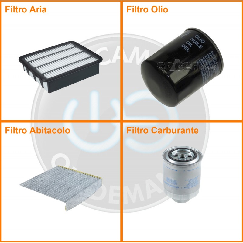 ComposizioneFiltro gasolio, Filtro olio, Filtro abitacolo ai carboni attivi, Filtro aria