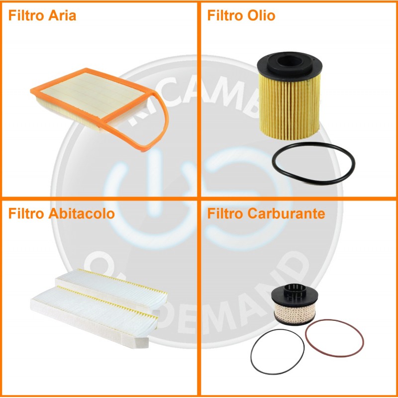 ComposizioneFiltro gasolio, Filtro olio, Filtro abitacolo, Filtro aria