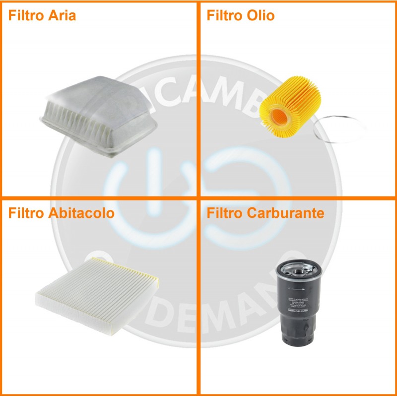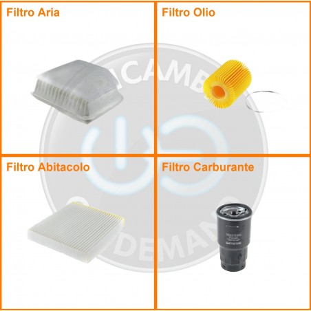 ComposizioneFiltro gasolio, Filtro olio, Filtro abitacolo, Filtro aria