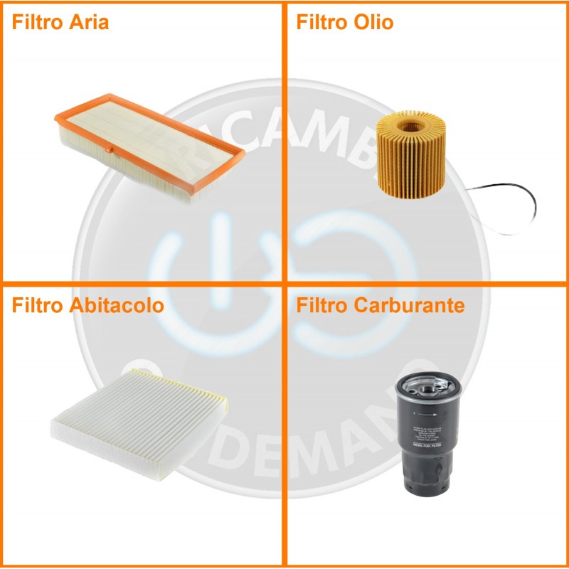 ComposizioneFiltro abitacolo, Filtro aria, Filtro gasolio, Filtro olio