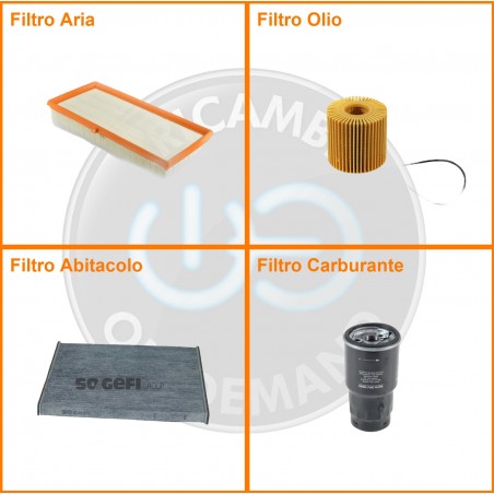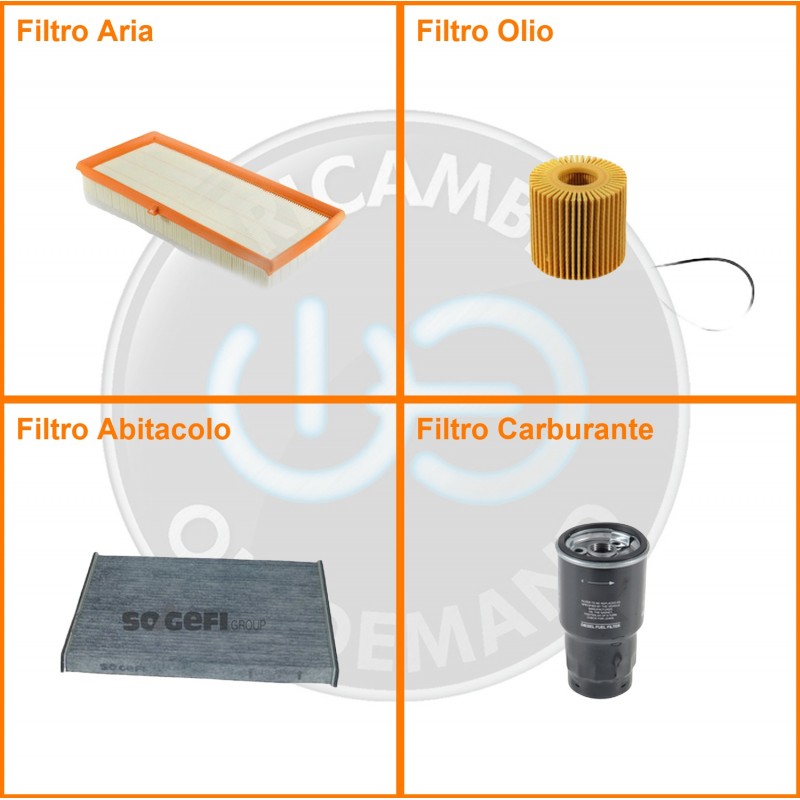 ComposizioneFiltro gasolio, Filtro olio, Filtro abitacolo ai carboni attivi, Filtro aria