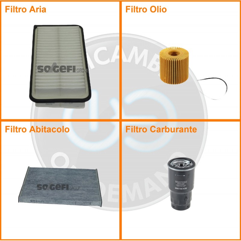 ComposizioneFiltro gasolio, Filtro olio, Filtro abitacolo ai carboni attivi, Filtro aria