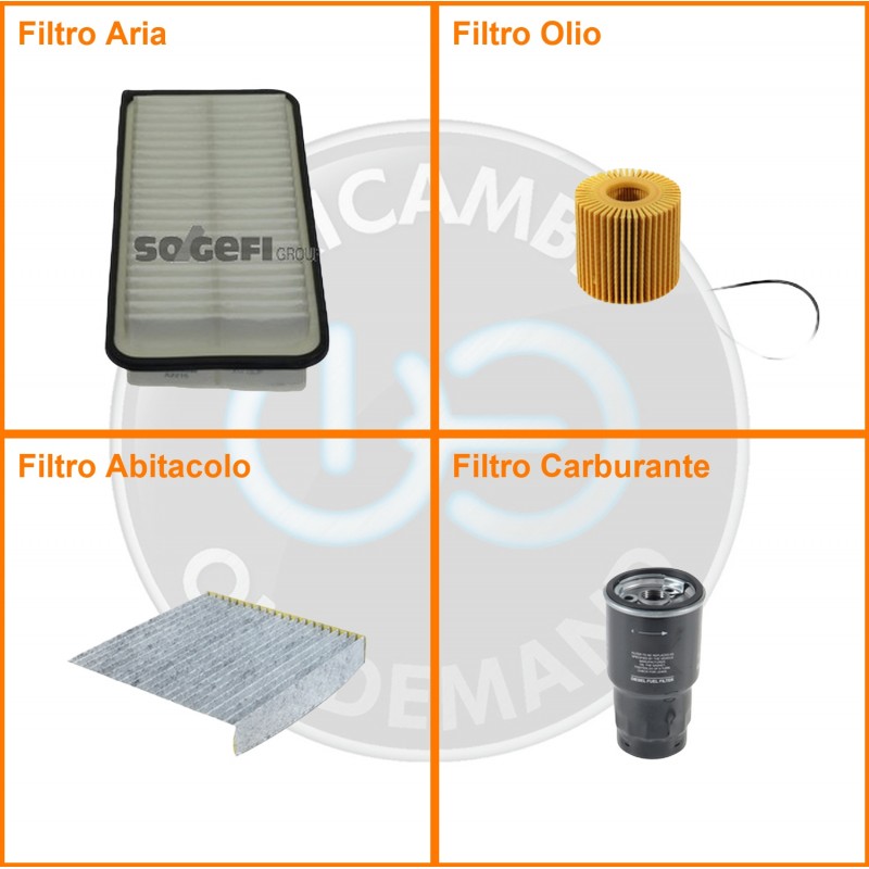 ComposizioneFiltro gasolio, Filtro olio, Filtro abitacolo ai carboni attivi, Filtro aria