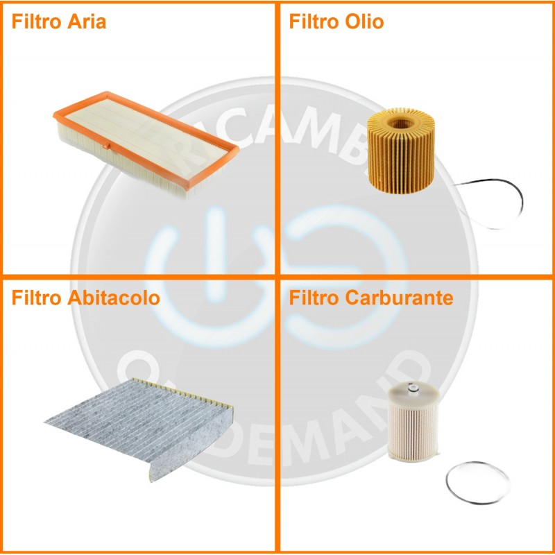 ComposizioneFiltro abitacolo ai carboni attivi, Filtro aria, Filtro gasolio, Filtro olio
