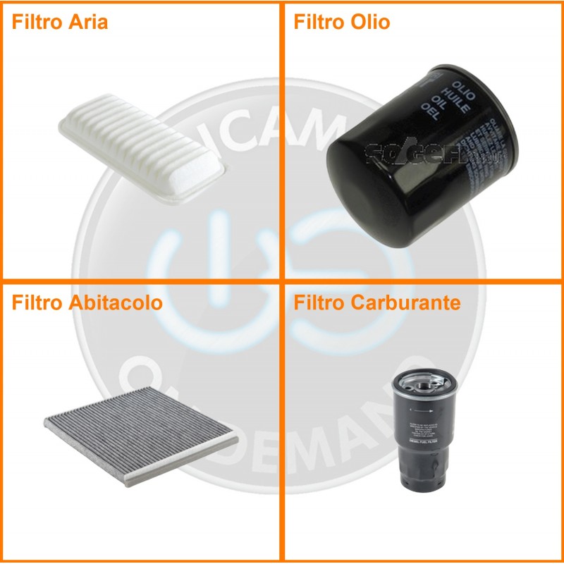 ComposizioneFiltro gasolio, Filtro olio, Filtro abitacolo ai carboni attivi, Filtro aria