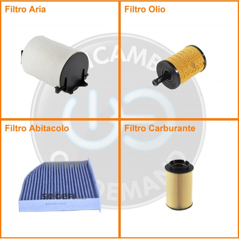 ComposizioneFiltro gasolio, Filtro olio, Filtro abitacolo ai carboni attivi, Filtro aria