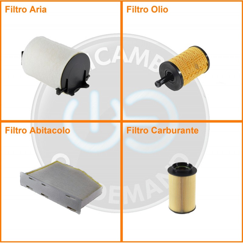 ComposizioneFiltro gasolio, Filtro olio, Filtro abitacolo, Filtro aria