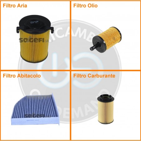 ComposizioneFiltro abitacolo ai carboni attivi, Filtro aria, Filtro gasolio, Filtro olio
