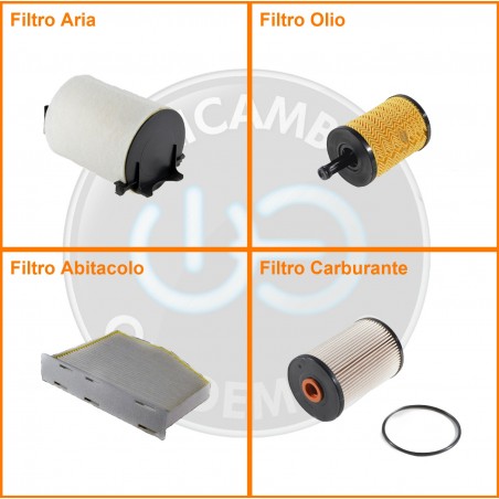 ComposizioneFiltro gasolio, Filtro olio, Filtro abitacolo, Filtro aria