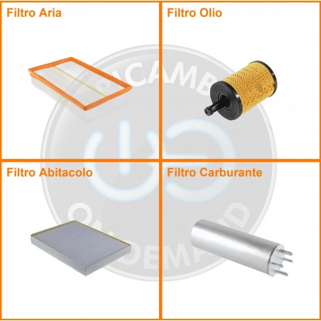 ComposizioneFiltro abitacolo, Filtro aria, Filtro gasolio, Filtro olio