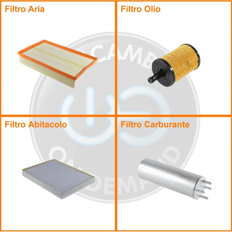ComposizioneFiltro gasolio, Filtro olio, Filtro abitacolo, Filtro aria