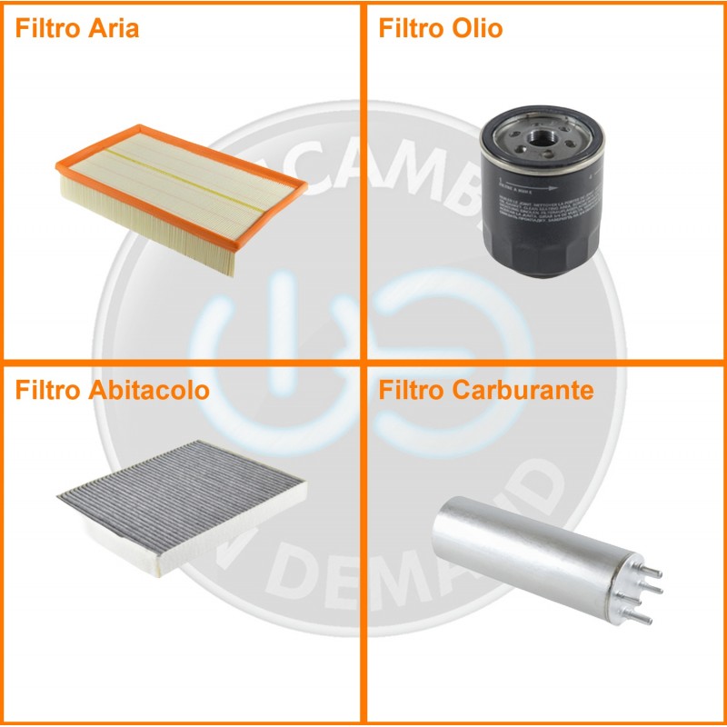 ComposizioneFiltro abitacolo ai carboni attivi, Filtro aria, Filtro gasolio, Filtro olio