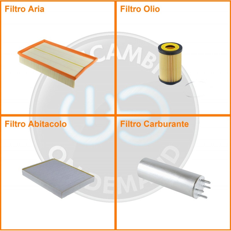ComposizioneFiltro gasolio, Filtro olio, Filtro abitacolo, Filtro aria