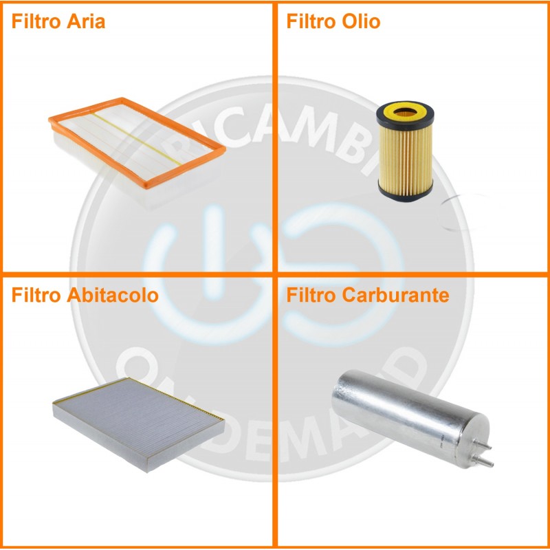 ComposizioneFiltro gasolio, Filtro olio, Filtro abitacolo, Filtro aria