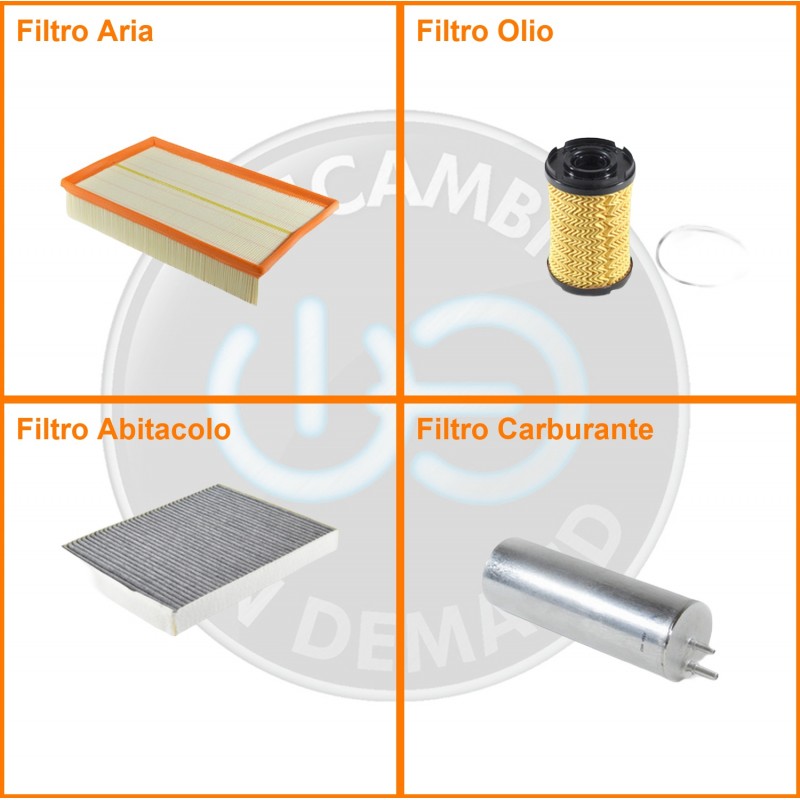 ComposizioneFiltro gasolio, Filtro olio, Filtro abitacolo ai carboni attivi, Filtro aria