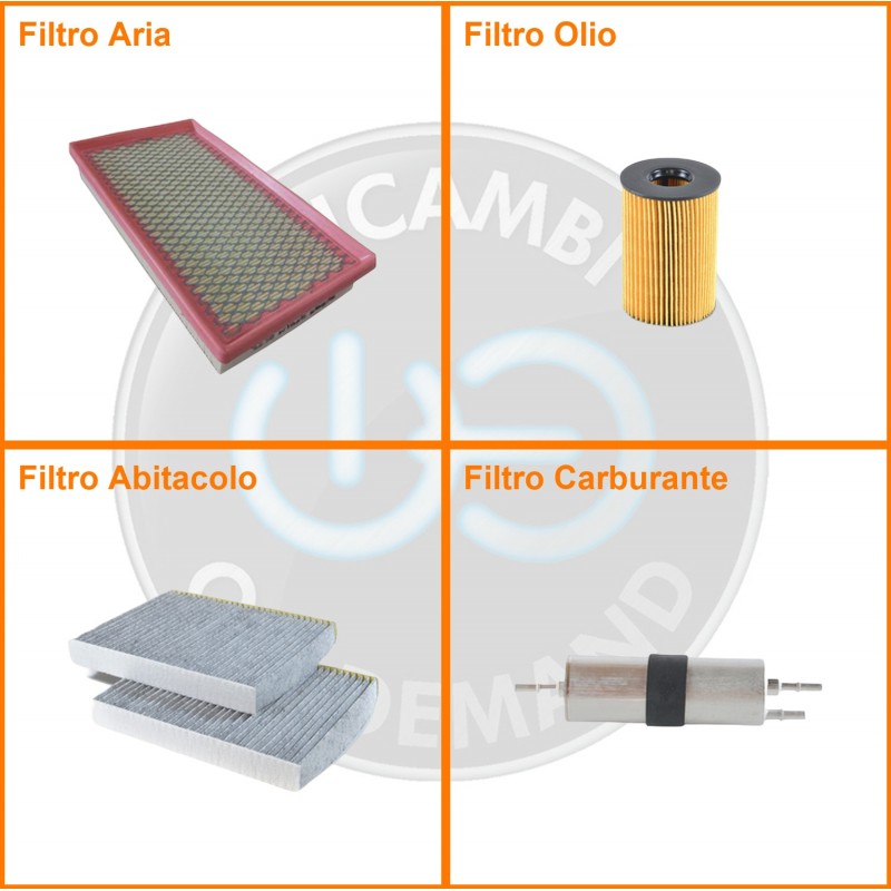 ComposizioneFiltro benzina, Filtro olio, Filtro abitacolo ai carboni attivi, Filtro aria