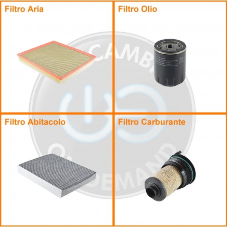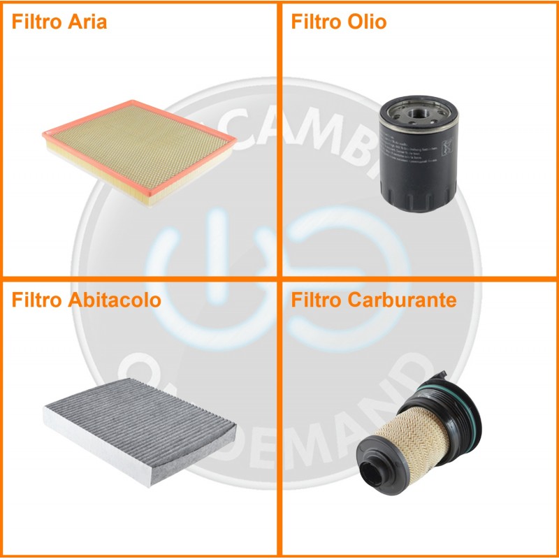 ComposizioneFiltro gasolio, Filtro olio, Filtro abitacolo ai carboni attivi, Filtro aria