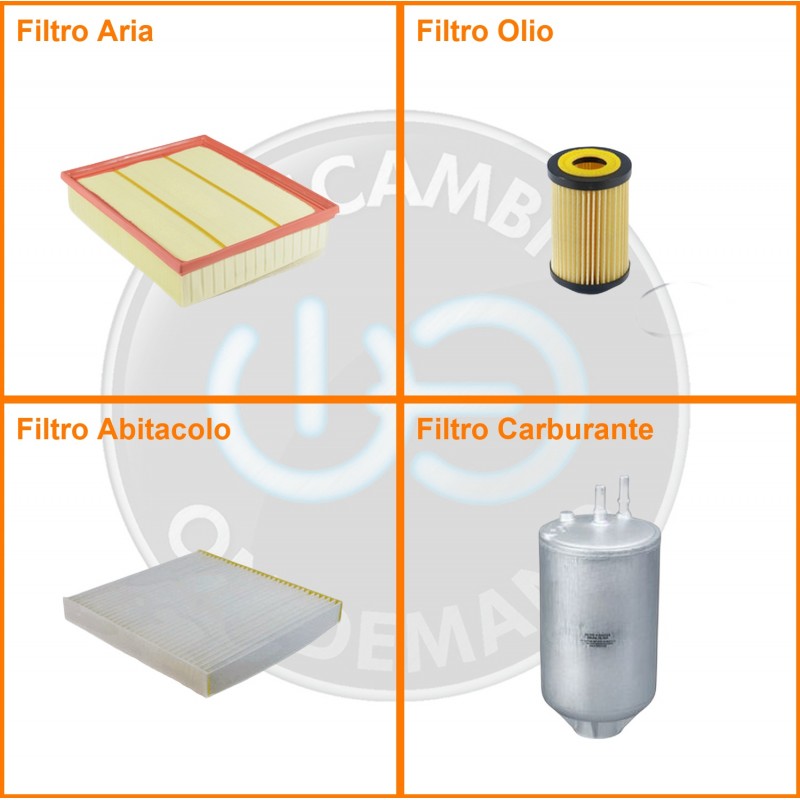 ComposizioneFiltro abitacolo, Filtro aria, Filtro gasolio, Filtro olio