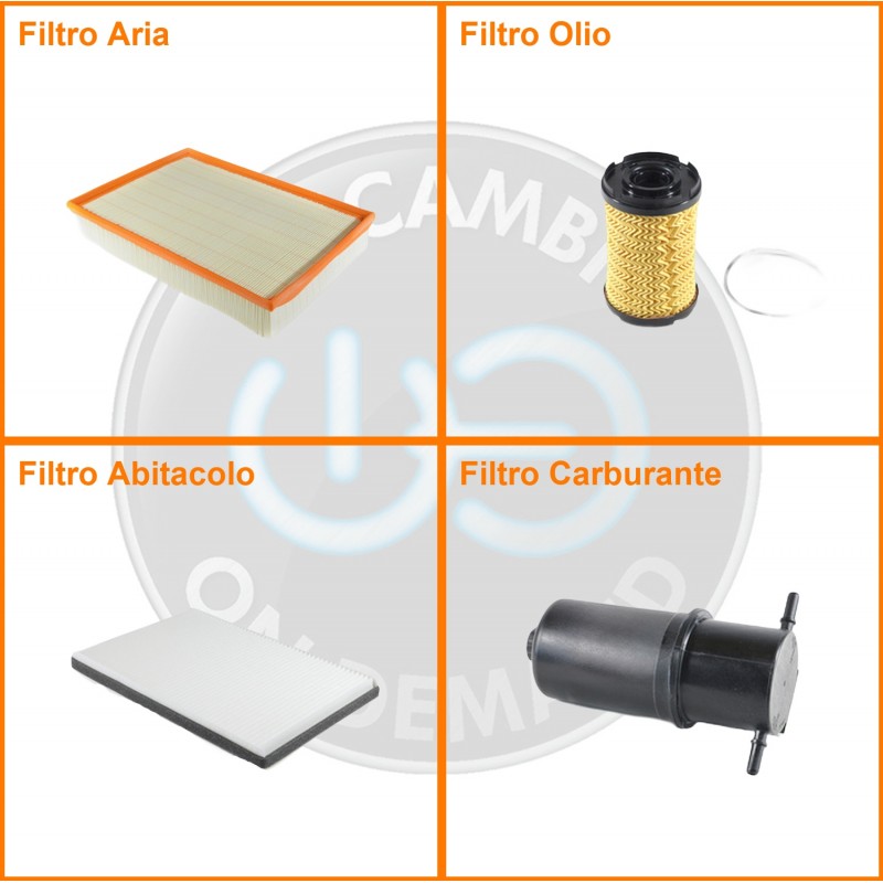 ComposizioneFiltro gasolio, Filtro olio, Filtro abitacolo, Filtro aria