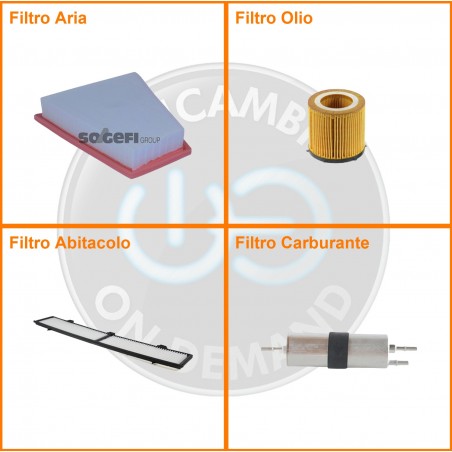 ComposizioneFiltro benzina, Filtro olio, Filtro abitacolo, Filtro aria