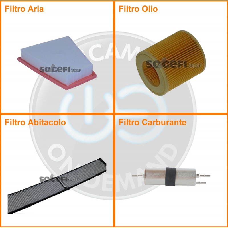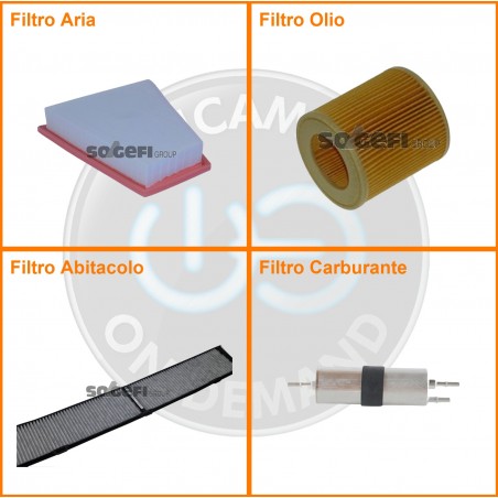 ComposizioneFiltro aria, Filtro benzina, Filtro olio, Filtro abitacolo ai carboni attivi