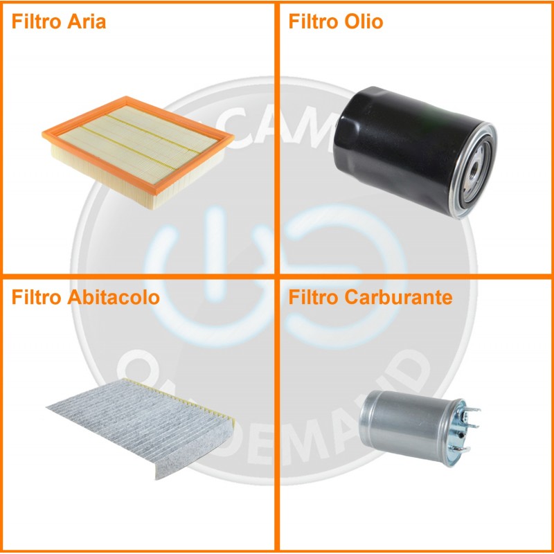 ComposizioneFiltro gasolio, Filtro olio, Filtro abitacolo ai carboni attivi, Filtro aria