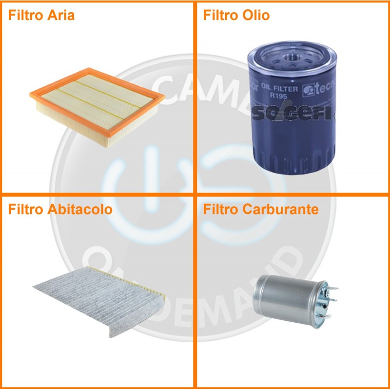 ComposizioneFiltro gasolio, Filtro olio, Filtro abitacolo ai carboni attivi, Filtro aria