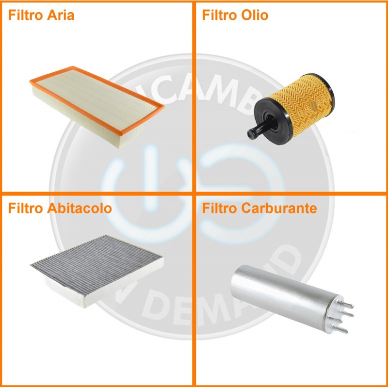 ComposizioneFiltro gasolio, Filtro olio, Filtro abitacolo ai carboni attivi, Filtro aria